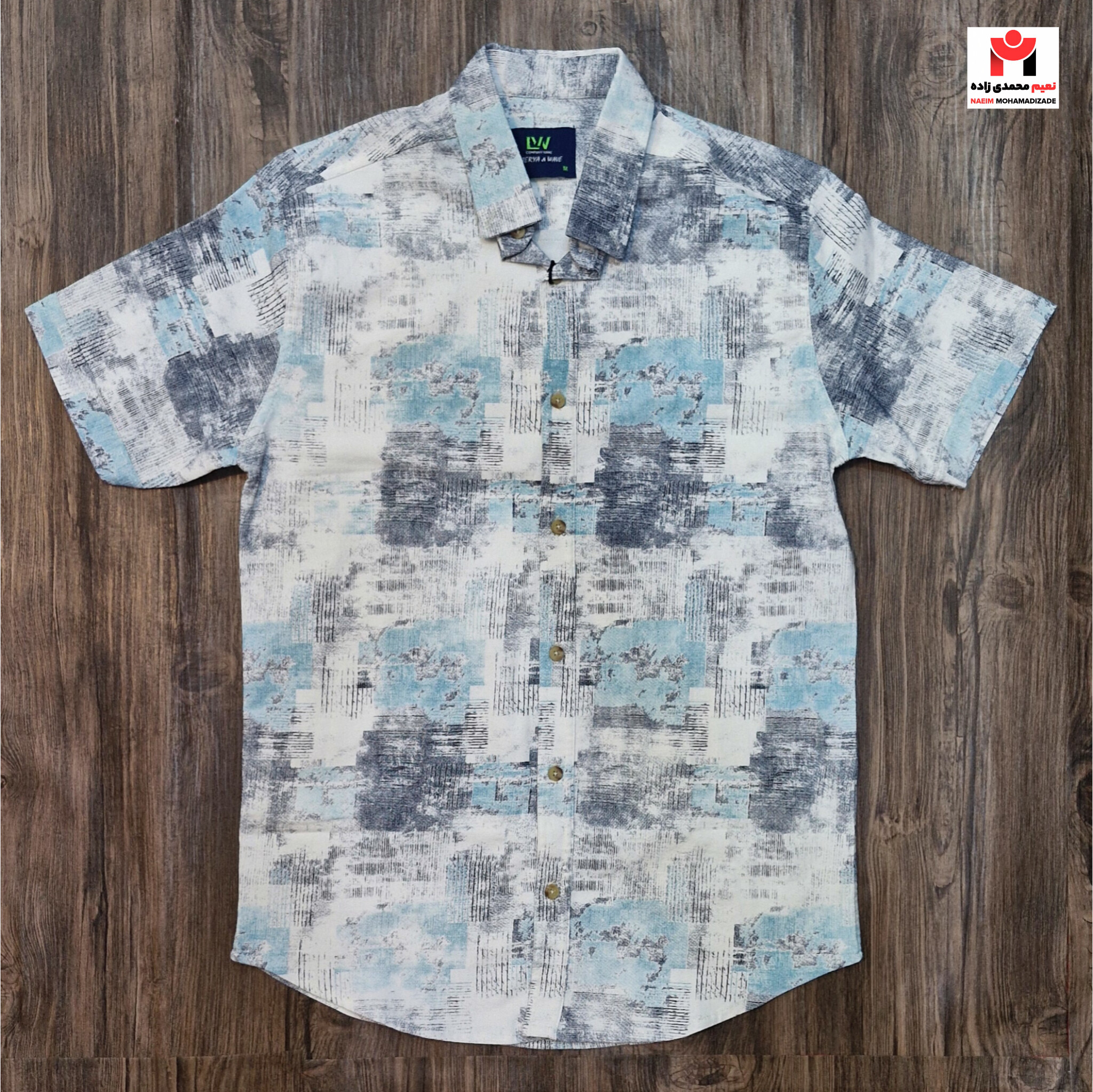 پیراهن آستین کوتاه مردانه کتان اندامی M-2XL